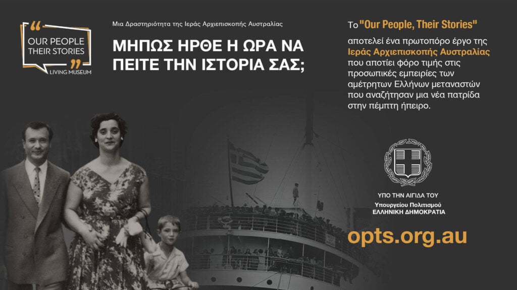 Το σημαντικό αυτό έργο, το οποίο εγκαινιάστηκε από την Α.Θ.Π. τον Οικουμενικό Πατριάρχη κ.κ. Βαρθολομαίο τον Οκτώβριο του 2024, έχει ως σκοπό την καταγραφή και αποθησαύριση των προσωπικών ιστοριών των ανθρώπων της Ελληνικής Ομογένειας στην Αυστραλία, πρώτης και δευτέρας γενιάς μεταναστών.