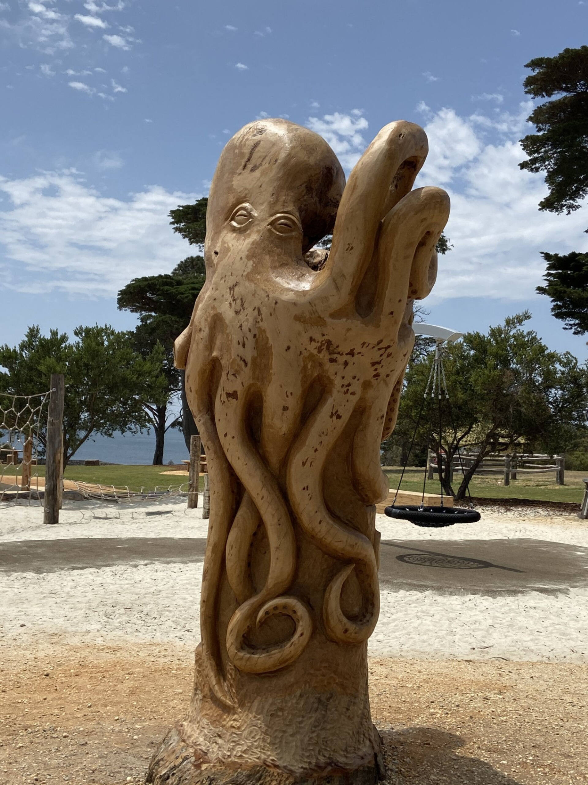 Το εντυπωσιακό ξύλινο γλυπτό του χταποδιού δεσπόζει στον χώρο του φεστιβάλ. Φωτογραφία: Supplied
