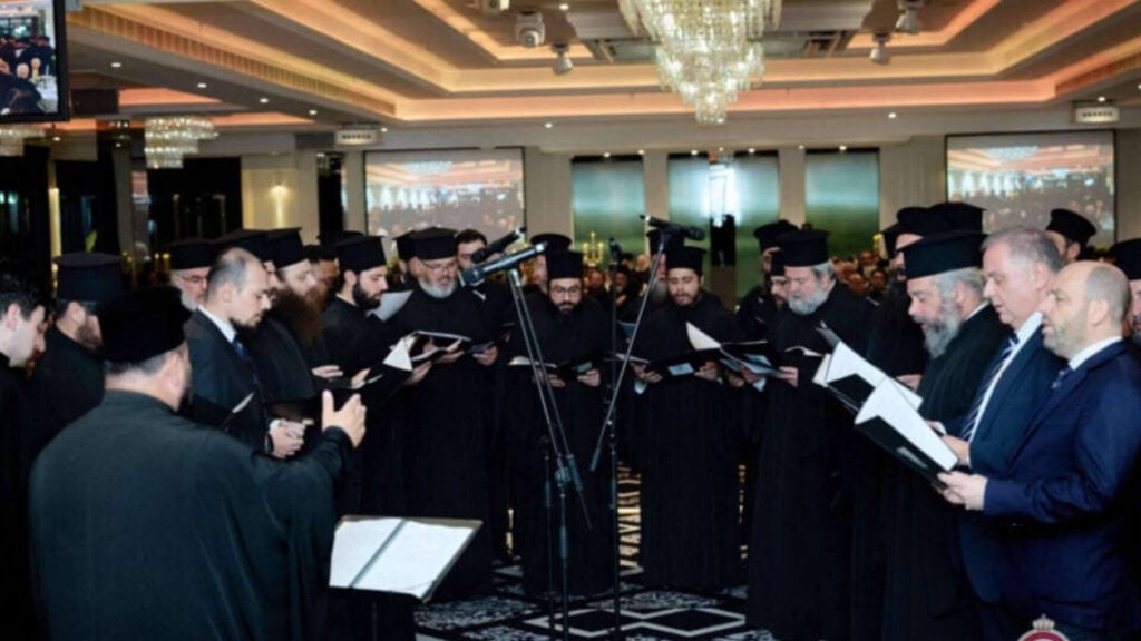 Among the many dignitaries were Metropolitan Apostolos of Miletus (representing His All-Holiness the Ecumenical Patriarch), the Abbots and Hierarchs: Metropolitan Ignatios of Demetrias, Metropolitan Gregorios of Cameroon, Metropolitan Ioustinos of Nea Krini and Kalamaria, Metropolitan Nathanael of Chicago, Metropolitan Myron of New Zealand, Metropolitan Damaskinos of Aetolia and Acarnania; members of the Archdiocesan Holy Eparchial Synod—Bishop Elpidios of Perth, Bishop Silouan of Adelaide, Bishop Kyriakos of Melbourne, Bishop Eumenios of Chora, Bishop Bartholomew of Brisbane, Bishop Athinagoras of Canberra; Bishop Iakovos of Militopolis, Bishop Christodoulos of Magnesia, Bishop Christophoros of Kerasounta; Archimandrite Ignatios Mourtzanos (Chancellor of the Metropolis of Larisa and Tyrnavos); Hieromonk Chrysostomos (Elder of the Cell of St John Chrysostom, Koutloumousian Skete, Mount Athos); Hierologist Fr Fotios Poulopoulos (Patriarchal Deacon); and Greece’s Consul-General in Sydney, George Skemperis.