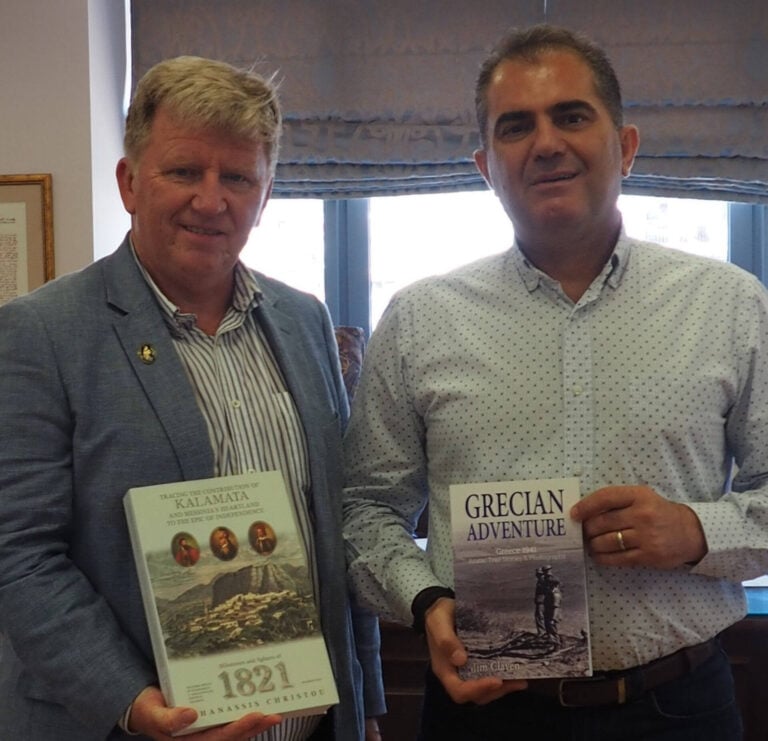 In May this year the Kalamata Municipality screened ‘Anzac The Greek Chapter’ in Kalamata and I presented a copy of ‘Grecian Adventure’ to local Messinia MP Perikles Mantas in support of the trail concept.