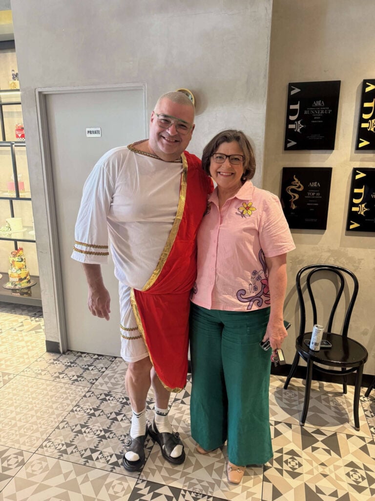 Philhellenika Festival founder John Ghionis, dressed in ancient Greek attire, with Federal MP for Cooper Ged Kearney during the festival’s official launch at Nikos Fairfield. Photos: Neos Kosmos